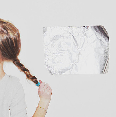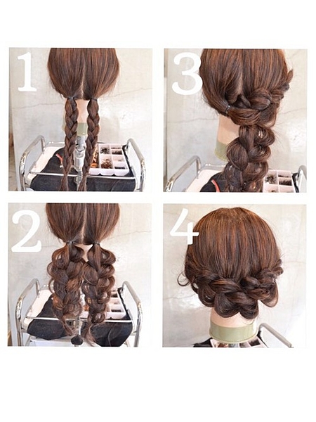 ①後ろの中央におさげをつくる。②編み目をおおきくくずす。