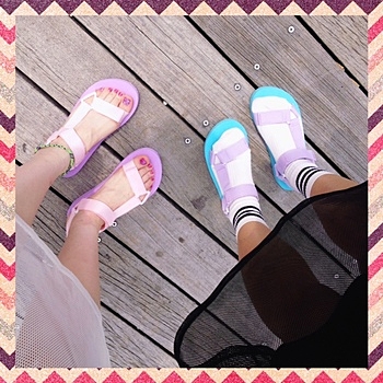 オシャレは足元から♡そんな言葉があるように、みんなが気になっている足元情報☆夏は薄着になるから、シンプルなコーデになりがち・・。でも足元を派手かわサンダルにするだけで、オシャレに可愛く目立てる♪いつもより、少しポップなカラーサンダルを選んで足元からオシャレに!