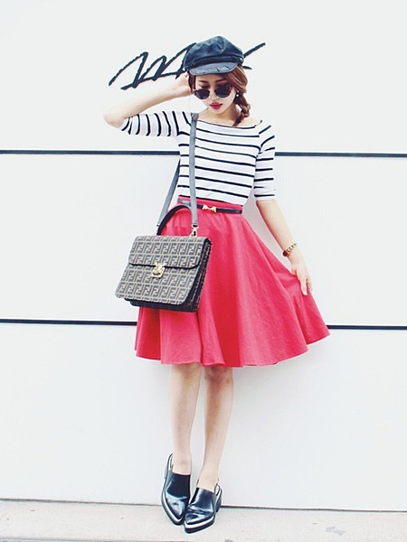 ボーダーと赤スカート