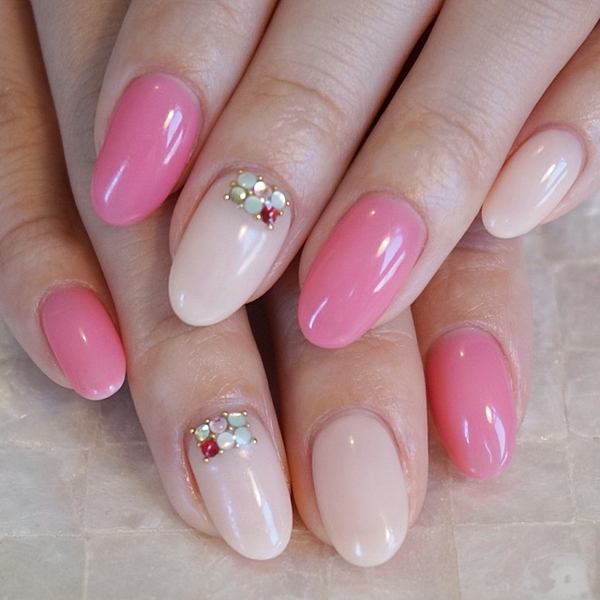 2色のピンクとホワイトのワンカラーネイル!女子が大好きなデザイン!