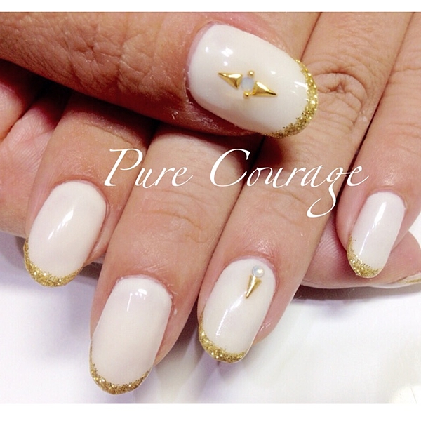 ホワイトベースにターコイズストーンが素敵なデザイン。夏ネイルにぴったりです。