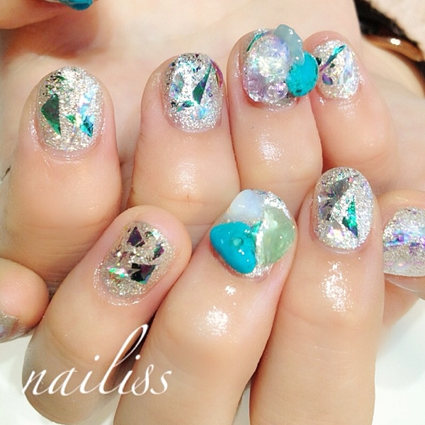 キラキラで派手but大人っぽい。シルバーのホログラムネイルカタログ