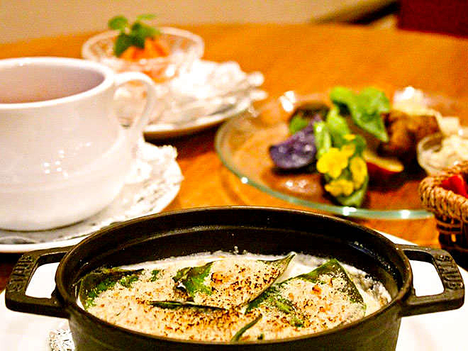 メイン「納豆とモロヘイヤとオクラのグラタン」