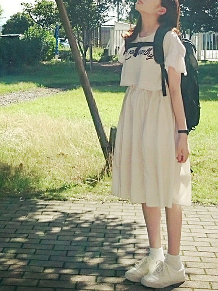 白を基調にしたコーデも