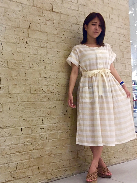マキシワンピと言えばリゾート感ですが、こちらは無地ベースに半袖なのでラフな感じで着られますね。