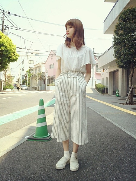 ボトムスはストライプがおすすめ。