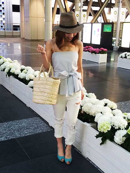 トップスに女性らしいデザインのものを持って来ればバッチリです♡
