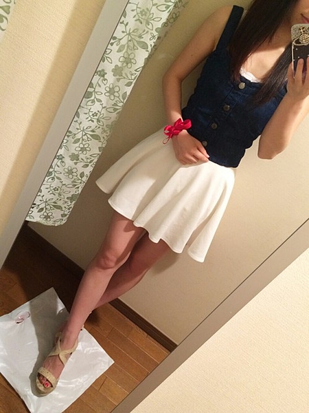 デニムのビスチェにホワイトのスカートがなんだか夏らしい♡