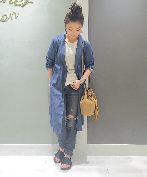 上品な色落ちと少し短くなっていている丈がポイントのジーパンです。ペタンコ靴を合わせてキュートなボーイッシュファッションをするのがおすすめです。