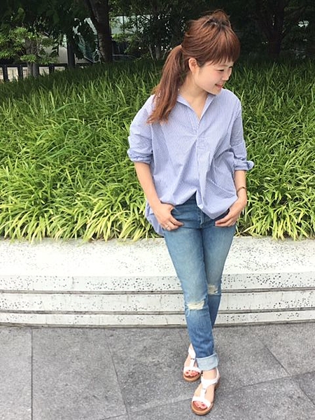彼に借りたようなボーイフレンドジーパンでコーデ♪