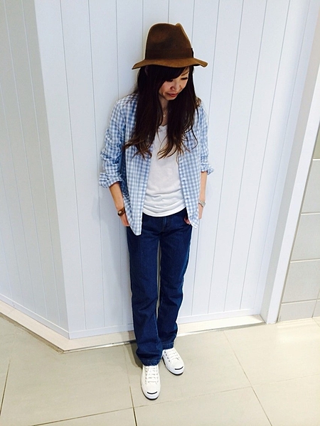 王道ストレートジーパンです。どんなアイテムにもピッタリです。裾をロールアップするのがキュートさもプラスされるのでおすすめな着こなし方です。