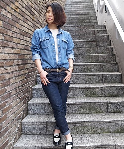 かなり太めのクラッシュタイプはボーイッシュスタイルにピッタリなアイテムです。裾をロールアップして女の子要素を取り入れて着こなしましょう♪
