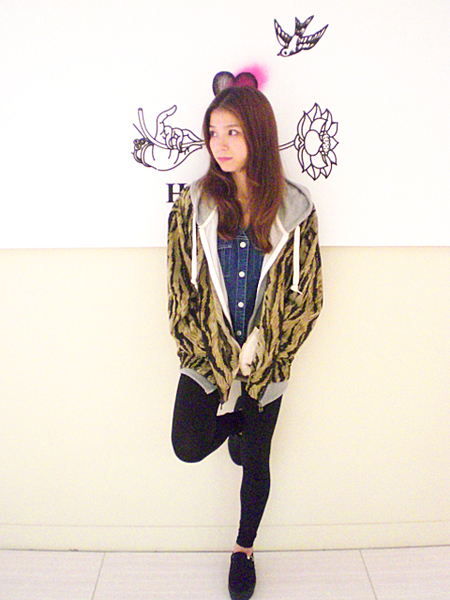 肌寒い時にさっと着れてオシャレに見せてくれるパーカーですね。ジップの先端がキラキラ光っていて女の子らしさをプラスしてくれるのも嬉しいアイテムです。