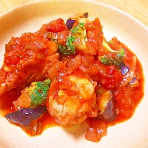 とり手羽元と夏野菜のトマトソース煮込み