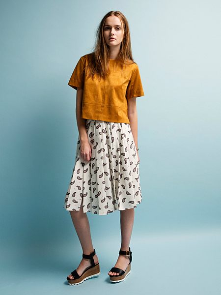 ペイズリー柄のプリーツスカートも