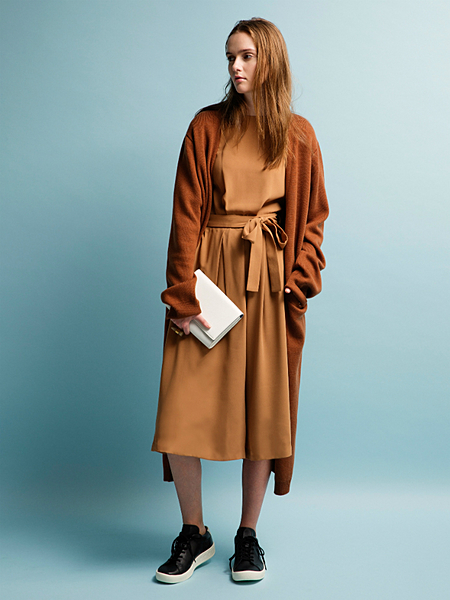 A/Wらしいキャメル色に統一したコーディネート。
