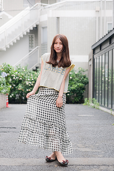 プリーツスカートが清楚でかわいらしい1着。