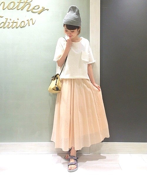 白と黄色のグラデーションがキレイな一枚。歩くたび、風で揺れるたびに見える色が変わる、オシャレなマキシスカートです。