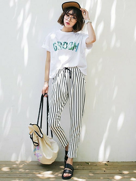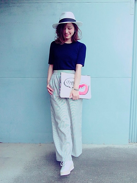 夏の大定番'ストライプパンツ'のリラックスムード漂う、女の子っぽ着こなし術