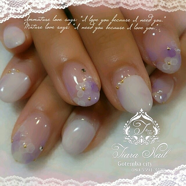 ホワイトとパープルを使った上品なフレンチネイル♪