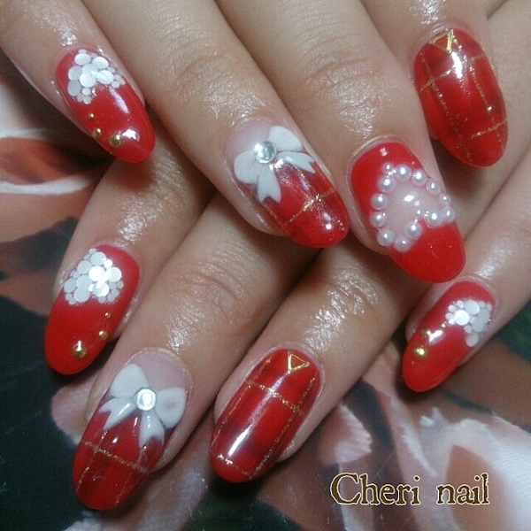お正月から春先まで使えるネイルデザインで可愛いですね♡