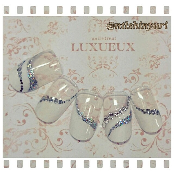 斜めフレンチは短い爪でもかわいい仕上がりになるので人気ですね! ホログラムのドットでキラキラかわいいネイル〜♡ http://t.co/a0sFDDlcYu