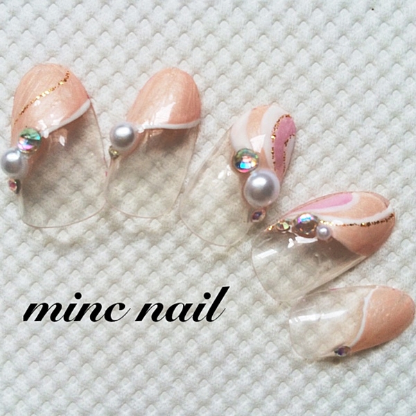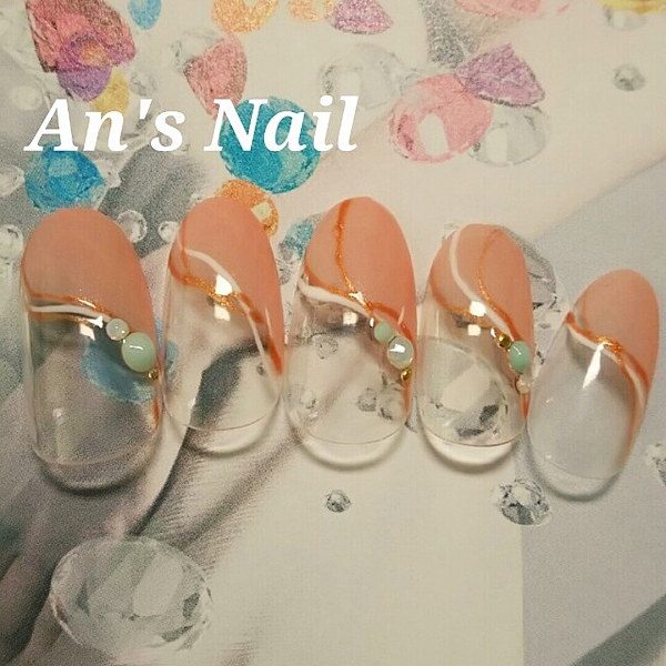 今年らしいマーブルも斜めフレンチに取り入れて。