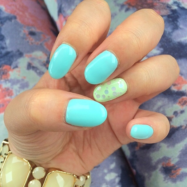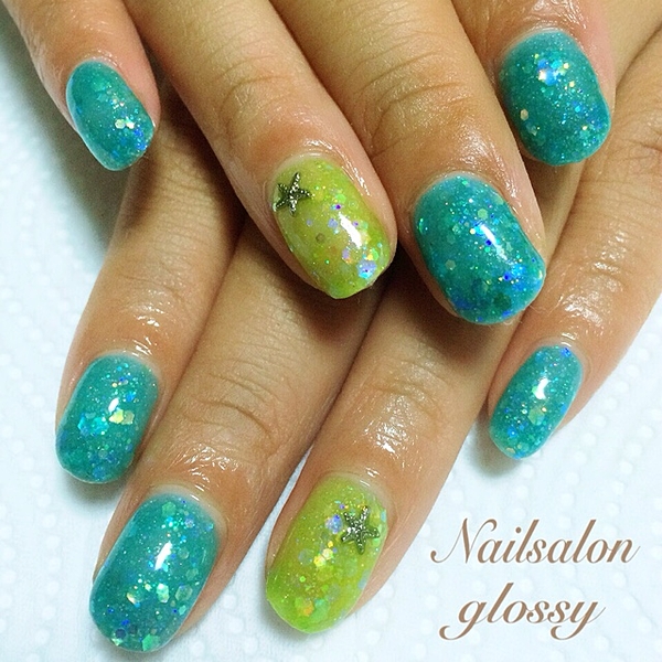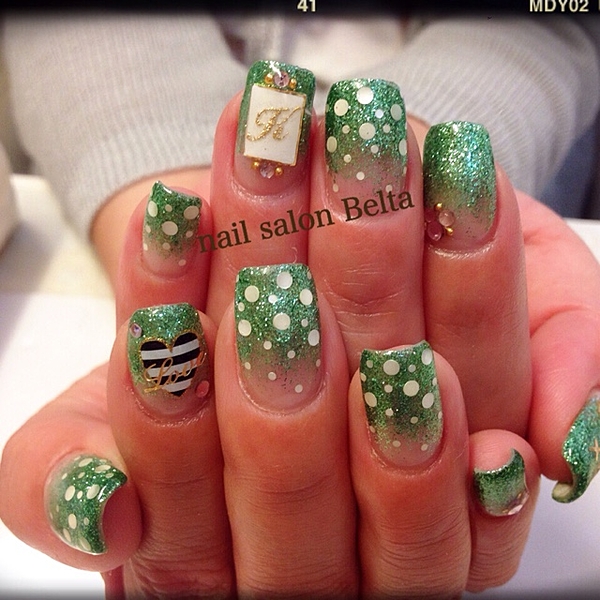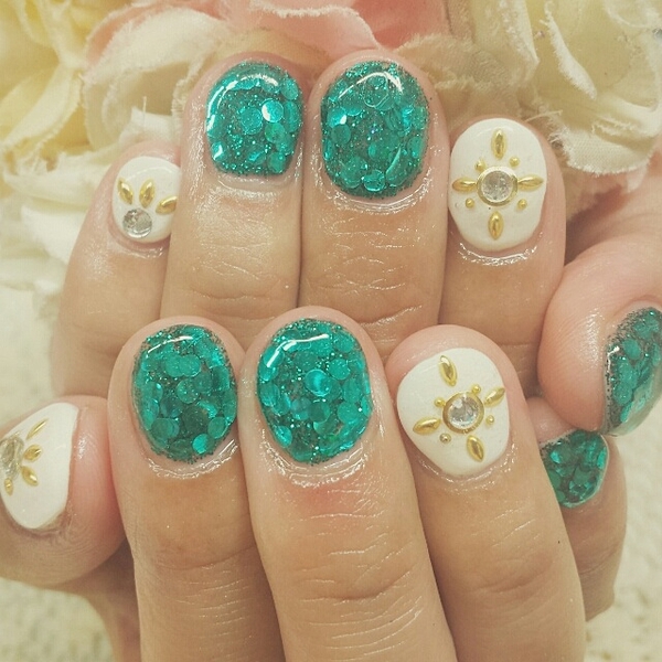 ミントグリーンのフレンチに、小花のようなホログラムのドットを合わせた初夏ネイル。 ▼ネイルクイック ラスカ茅ヶ崎店より http://t.co/a0yRciM73v http://t.co/N8JG5AQwnx