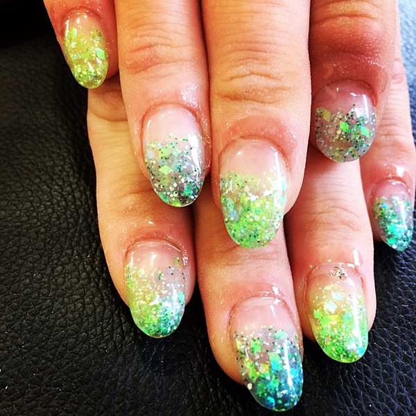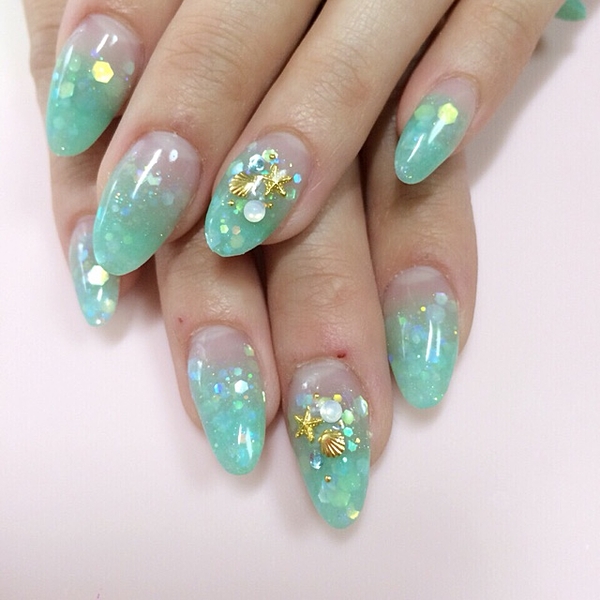白とグリーンの縦グラデーションに、乱切りホロでキラキラ☆爽やかネイル♡ #nailclubask #代官山 #恵比寿 #ネイルサロン #ジェルネイル #逆フレンチ #縦グラデーション #ホログラム http://t.co/UTANTqoupu