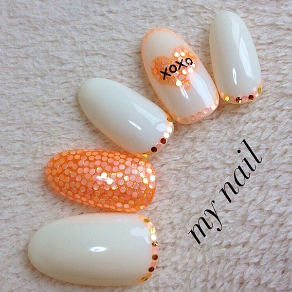 ミルキーオレンジとベージュで落ち着いた大人ネイル!