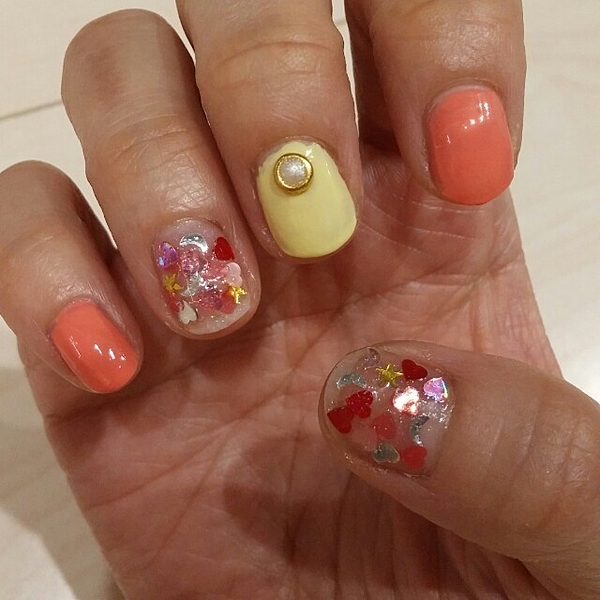 ネイル直してきたー!! 前回は承太郎イメージだったので、今回は花京院。赤いホロを両手につけてもらいました。 しかし、なんか草餅みたいな色にみえる(笑) http://t.co/VH6pAQ6st7