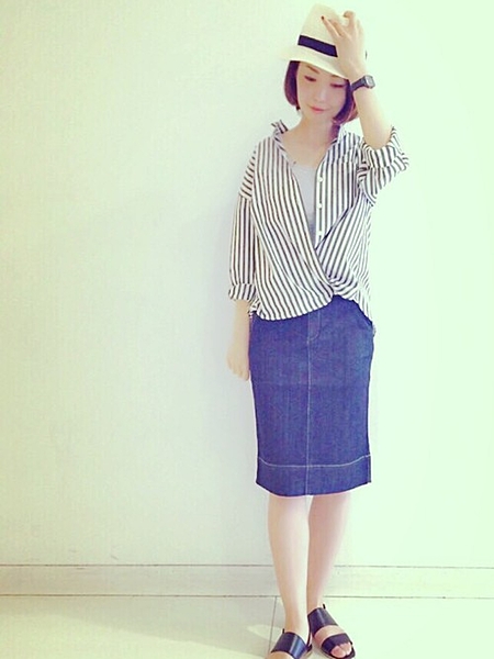 タイトなデニムのスカートを合わせて*
