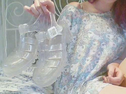 夏の足元はキラッとするクリア素材の靴でるんるん気分♪