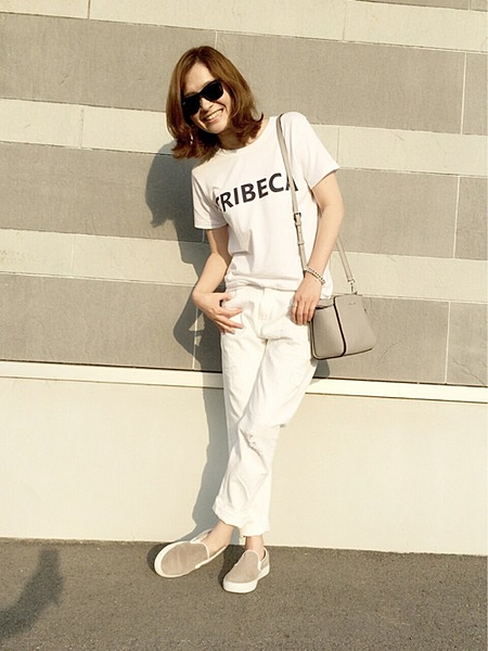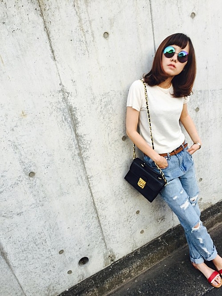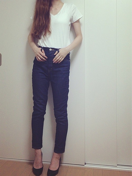 白Tシャツ+デニムの鉄板コーデ。