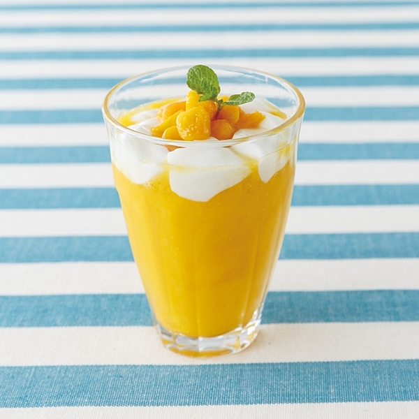 マンゴーソースと凍らせたパイナップルをフローズン状にした夏らしいドリンク..*
