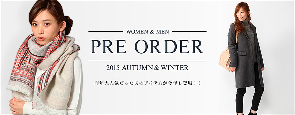 ただ今、大好評2015秋冬アイテム予約受付中です!大人気のチェスターコートをはじめ、昨年大ヒットを記録したリバーシブルストールなどなど…!是非チェックしてください!