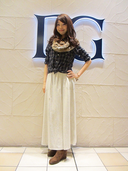 チェックシャツとマキシ丈スカートのコーディネート♪