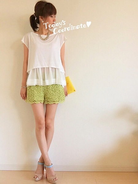 レース生地のショートパンツ。