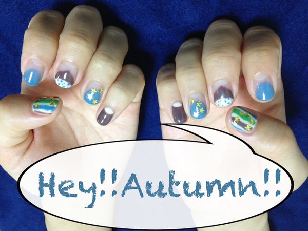 ポップな栗ネイルをしたい方は水色などの元気な色合いと合わせるのがオススメ♡星のラメも元気さを表していて素敵ですね!