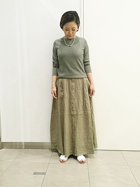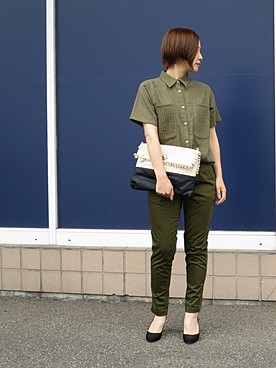 淡いカーキと濃いめカーキを合わせれば、こんなに涼しげでおしゃれに決まります。