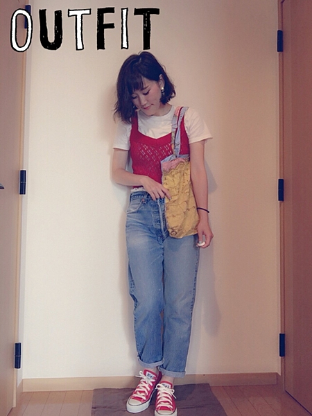 相性抜群の赤ビスチェは真似したいスタイルです*