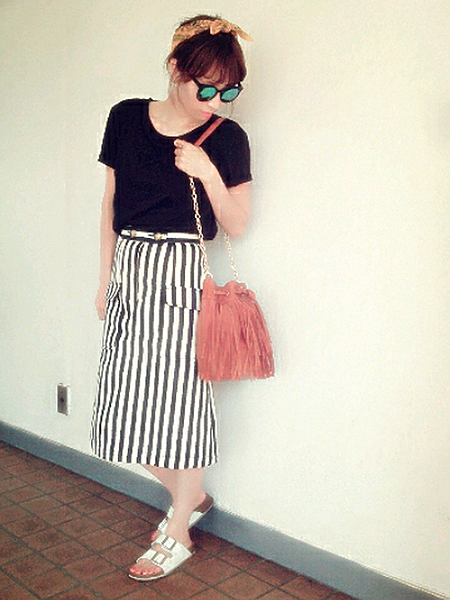 ストライプスカートを組み合わせたコーデ。