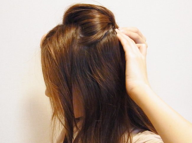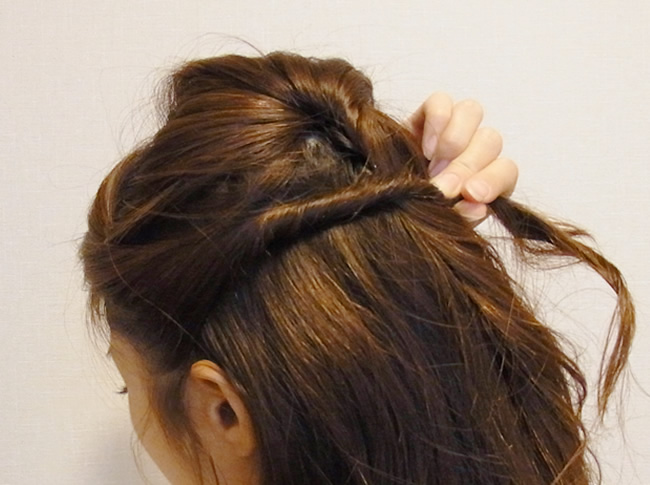 出典:http://yuigami.com 毛束を分けた所へ入れ込みぐるんとくぐらせます。くぐらせたら下にひっぱって完成です。