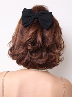 出典:https://jp.pinterest.com/ 大き目のリボンが可愛いアレンジ。毛先をしっかり巻いてあるのもリボンと相性がいいですね。巻いてあれば留めるだけの簡単なアレンジですが、ヘアアクセがあると一気に華やかになりますよね。