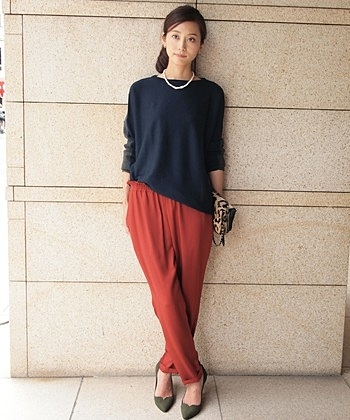 裾にスリットが入っていてアクセントになってアクセントになりますね。やや足首が出ているのでさわやかな印象です。