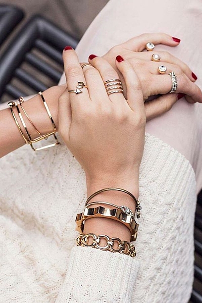 どんな種類のアクセサリーともマッチするゴールドやシルバー。重ね付けして使うのがおすすめ♥