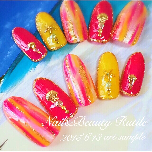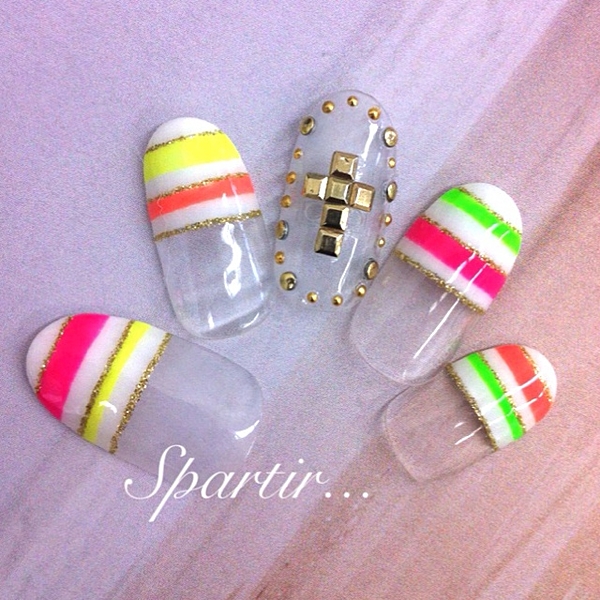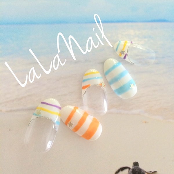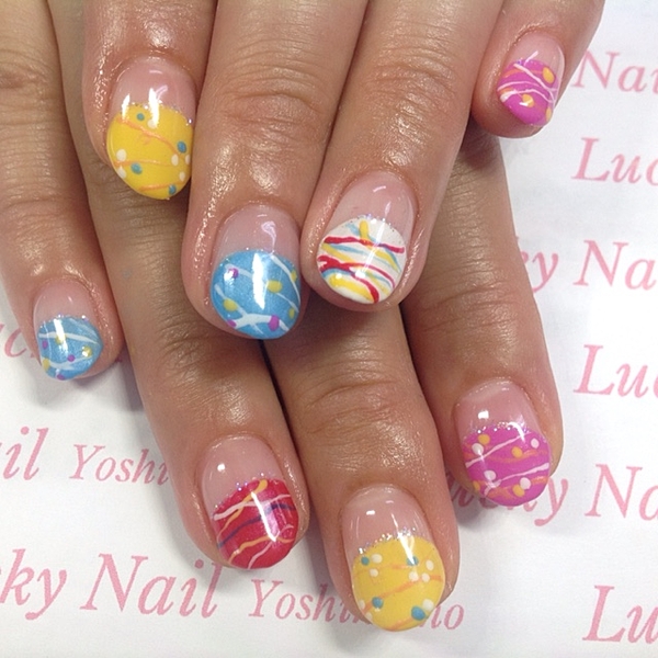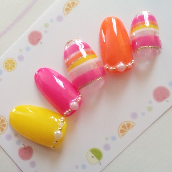 簡単なのに夏っぽくて可愛い♡カラフルデザインのジェルネイル