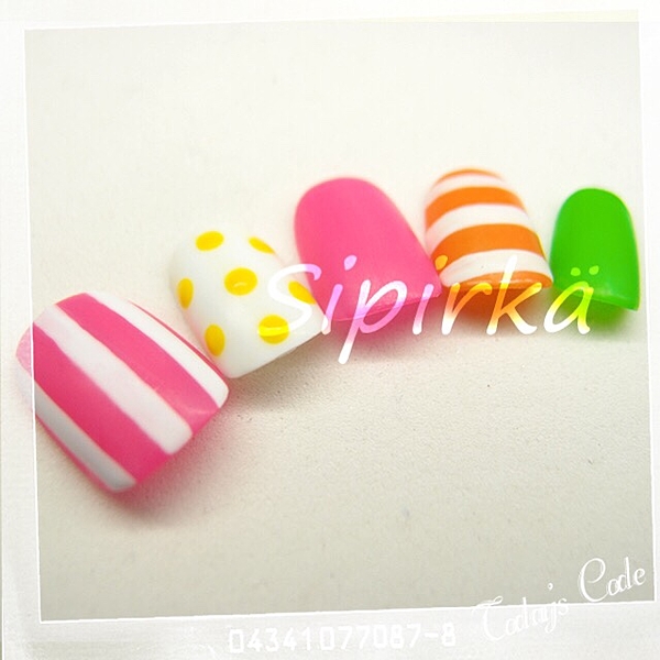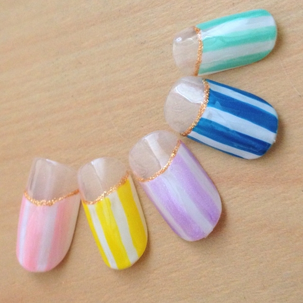 ピンク、オレンジ、イエロー、ブルー、グリーン・・カラフルなシンプルフレンチ