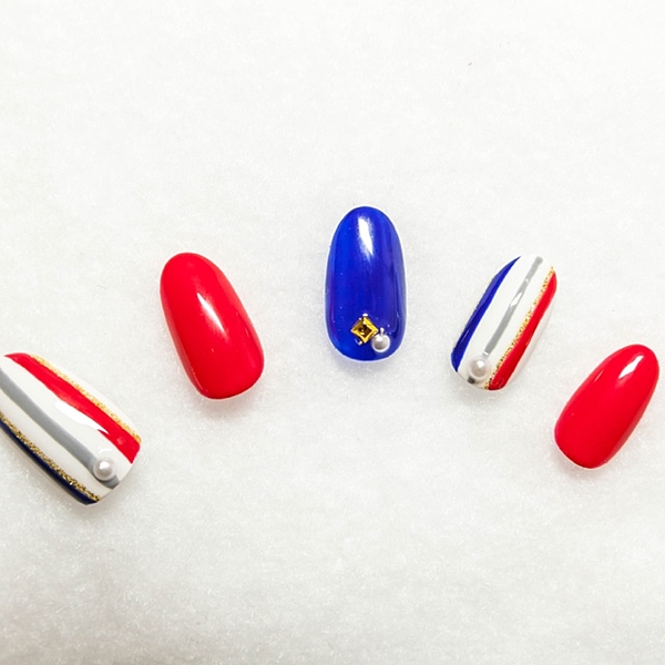 ホワイトの細ラインでボーダーにしたり、グレーの1色塗りを入れると大人っぽさがプラスされます♡