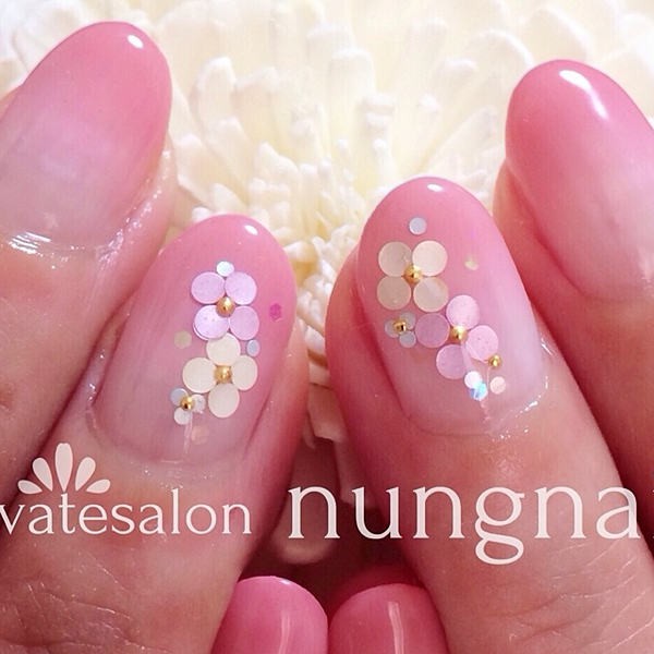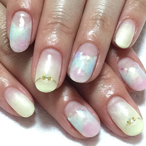 明るい色でも色をうすくして飾りを付けすぎないことで少し大人な仕上がりに!